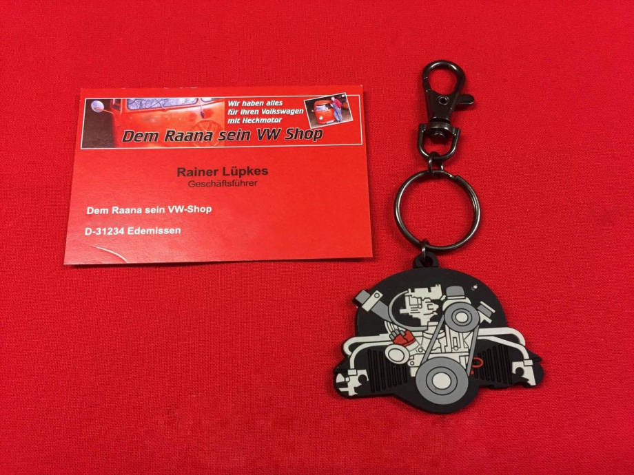 Hier gibt es einen schönen Schlüsselanhänger für den VW Käfer - Fahrer in der Ausführung "Käfermotor".