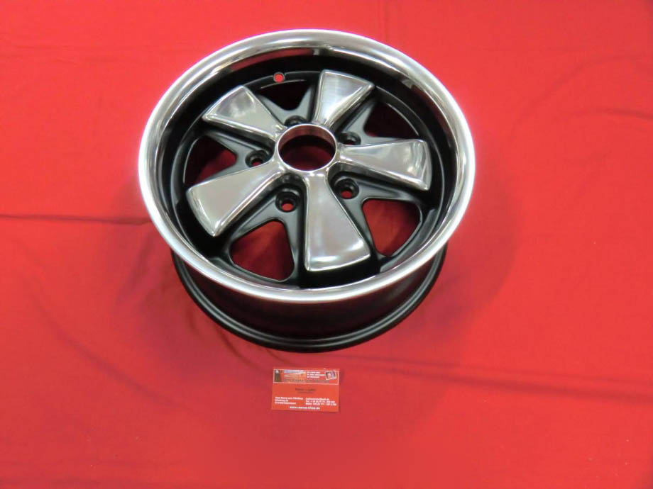 Eine Fuchs Felge in 6x15, ET 36, 5x130 im RSR-Look (Old School Look), mattschwarzer Stern mit poliertem Felgenbett und Speichen!!