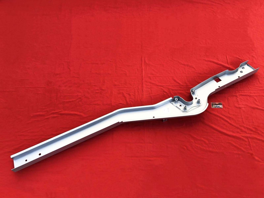 Bei diesem Längsträger handelt es sich um eine sehr präzise Reproduktion mit allen notwendigen Öffnungen, Verstärkungen und Gewindebuchsen für die Aufnahme der Vorderachse.