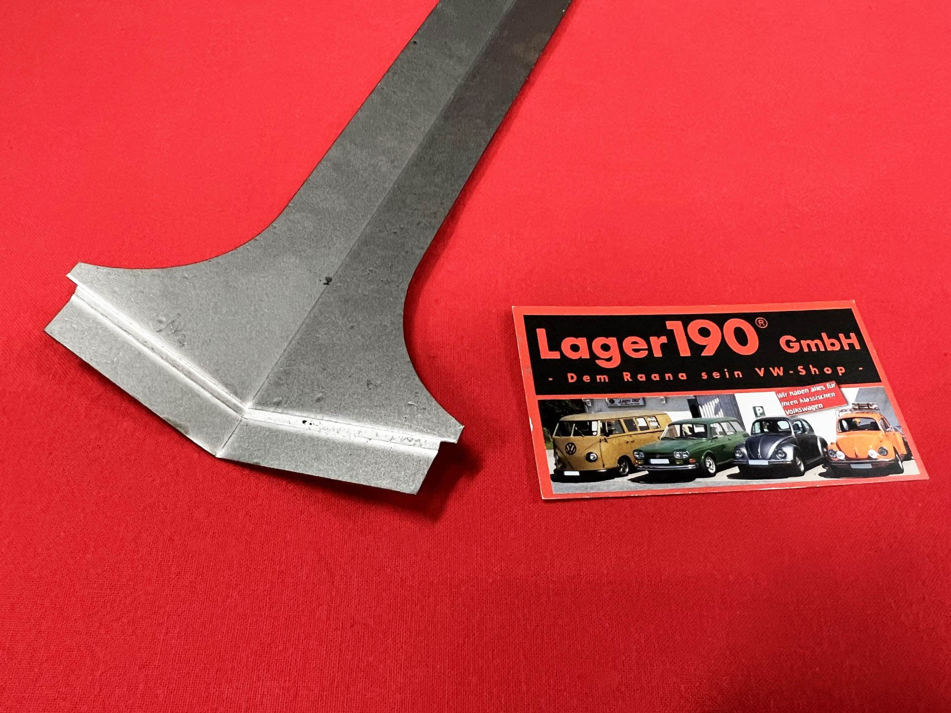 Hier gibt es ein Rep.-Blech für die Mitte des Scheibenrahmens der Frontscheibe vom VW Bus T1.