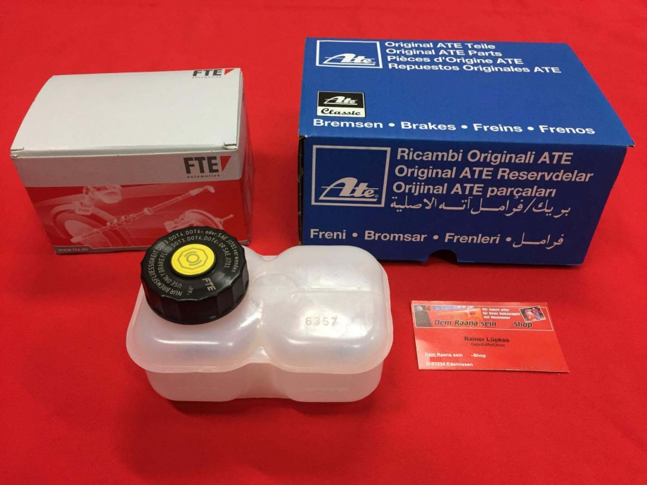 Hier bekommen Sie keine abgelagerte Uraltware, sondern einen NEUEN Bremsflüssigkeitsbehälter von ATE oder FTE (je nach Verfügbarkeit).