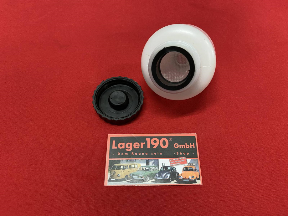 Hier gibt es den Bremsflüssigkeitsbehälter für den VW Bus T1 mit dem Einkreisbremssystem.