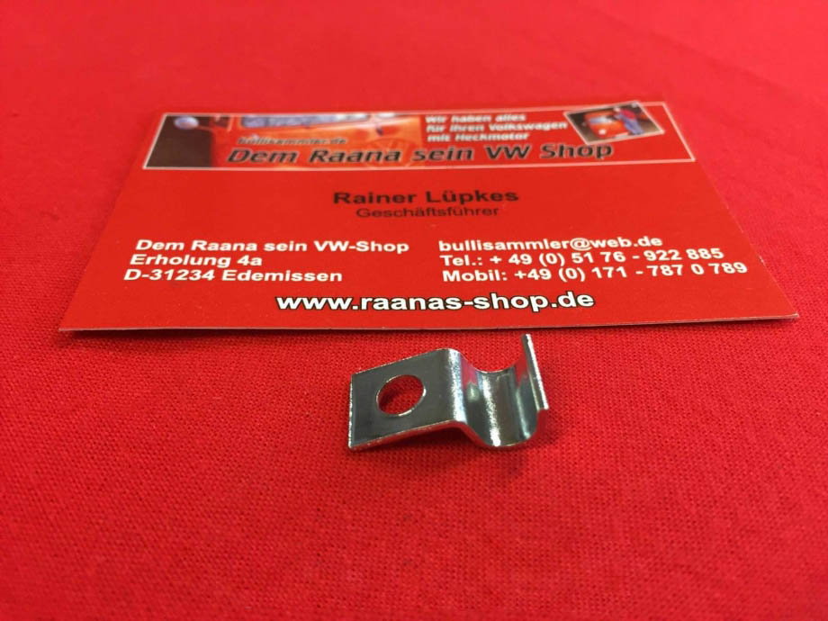 Hier gibt es einen Clip / Klammer aus Metall mit Loch zur Befestigung der Bremsleitung unter dem Bus.