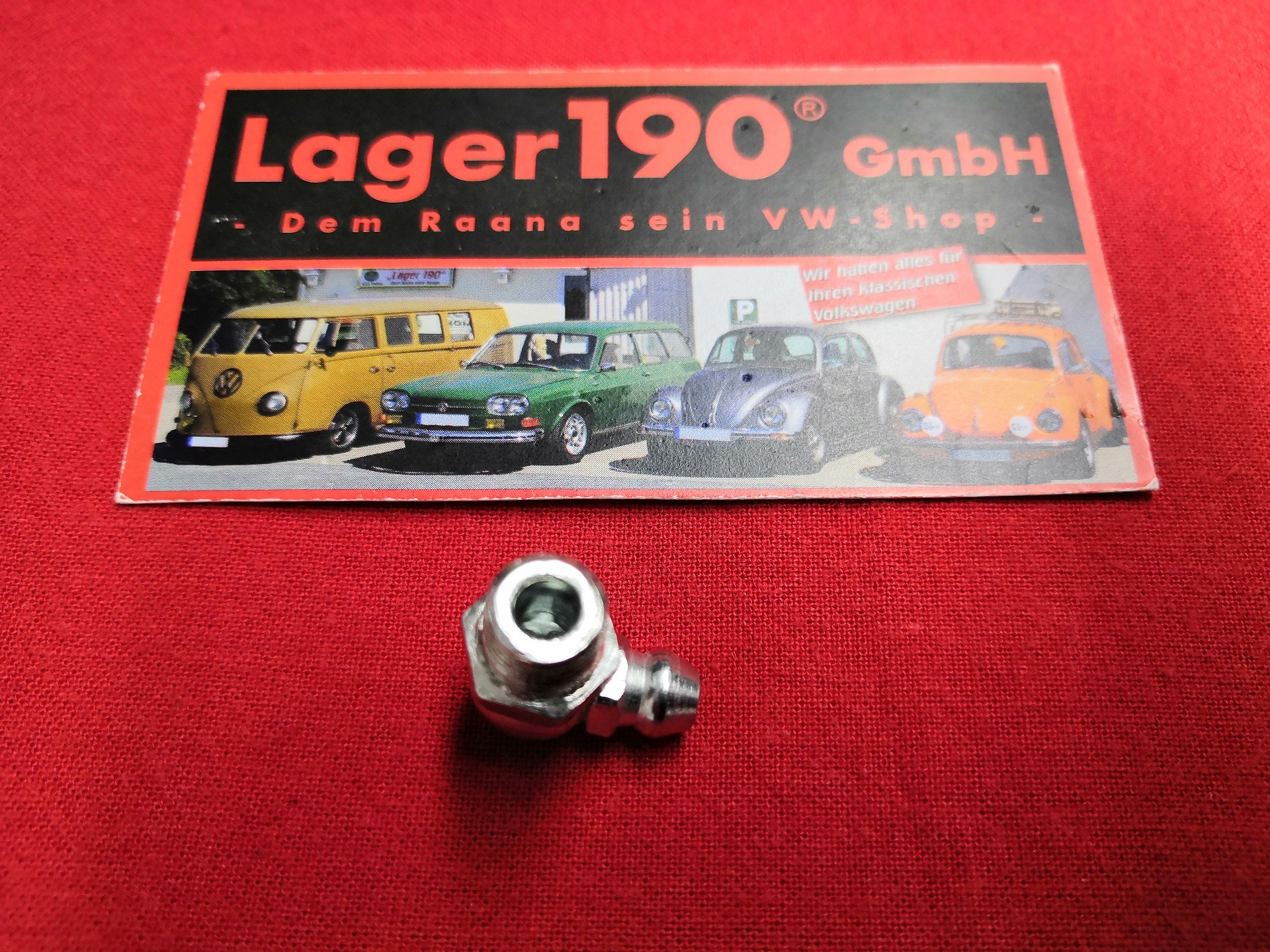 Hier gibt es einen um 90° abgewinkelten Schmiernippel mit M8 x 1 Gewinde für die Vorderachse des VW Bus T1 von 08/64-07/67 und T2 von 08/67-04/79.