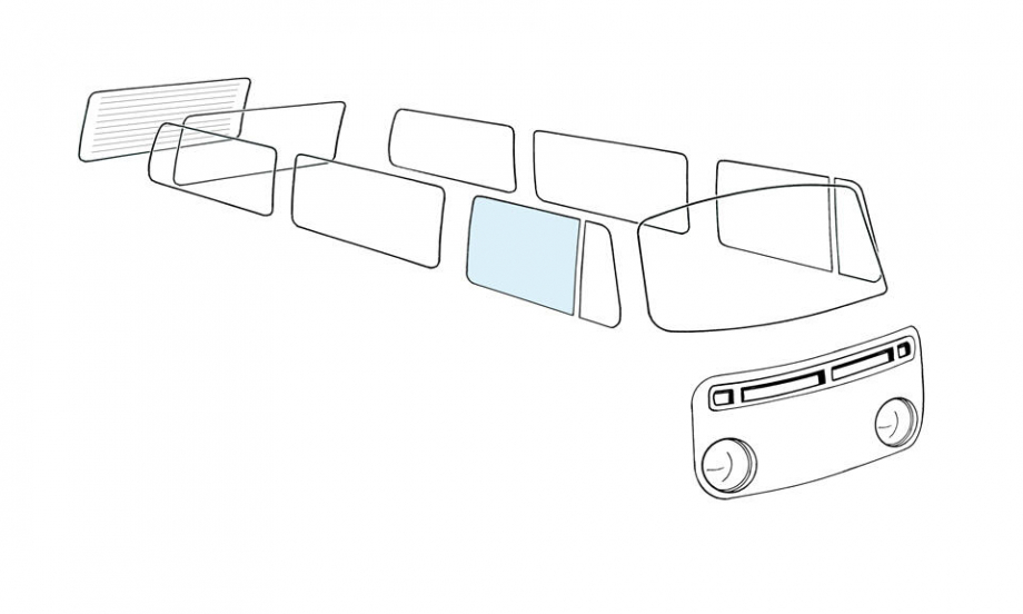 Hier gibt es eine Glasscheibe für das Türfenster vorne rechts (Beifahrerseite).