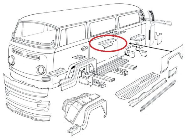 Das Abdeckblech passt in alle VW Bus Modelle von 08/67 - 07/71.