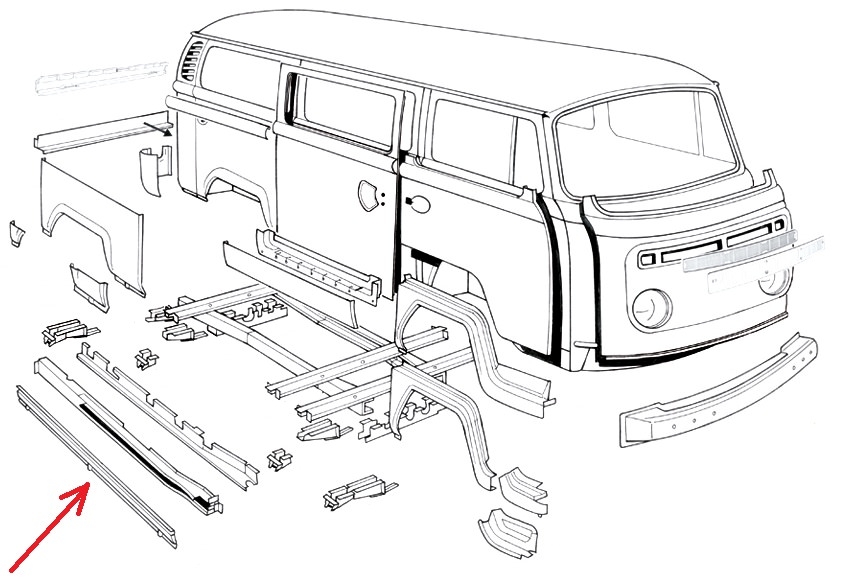 Hier gibt es das Reparaturblech für den linken Schweller (Fahrerseite) für den VW Bus T2.