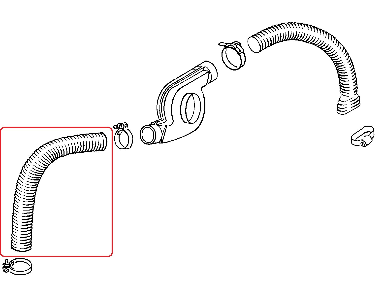 Der Heizschlauch ist für das elektrische Heizungsgebläse hinten, links.