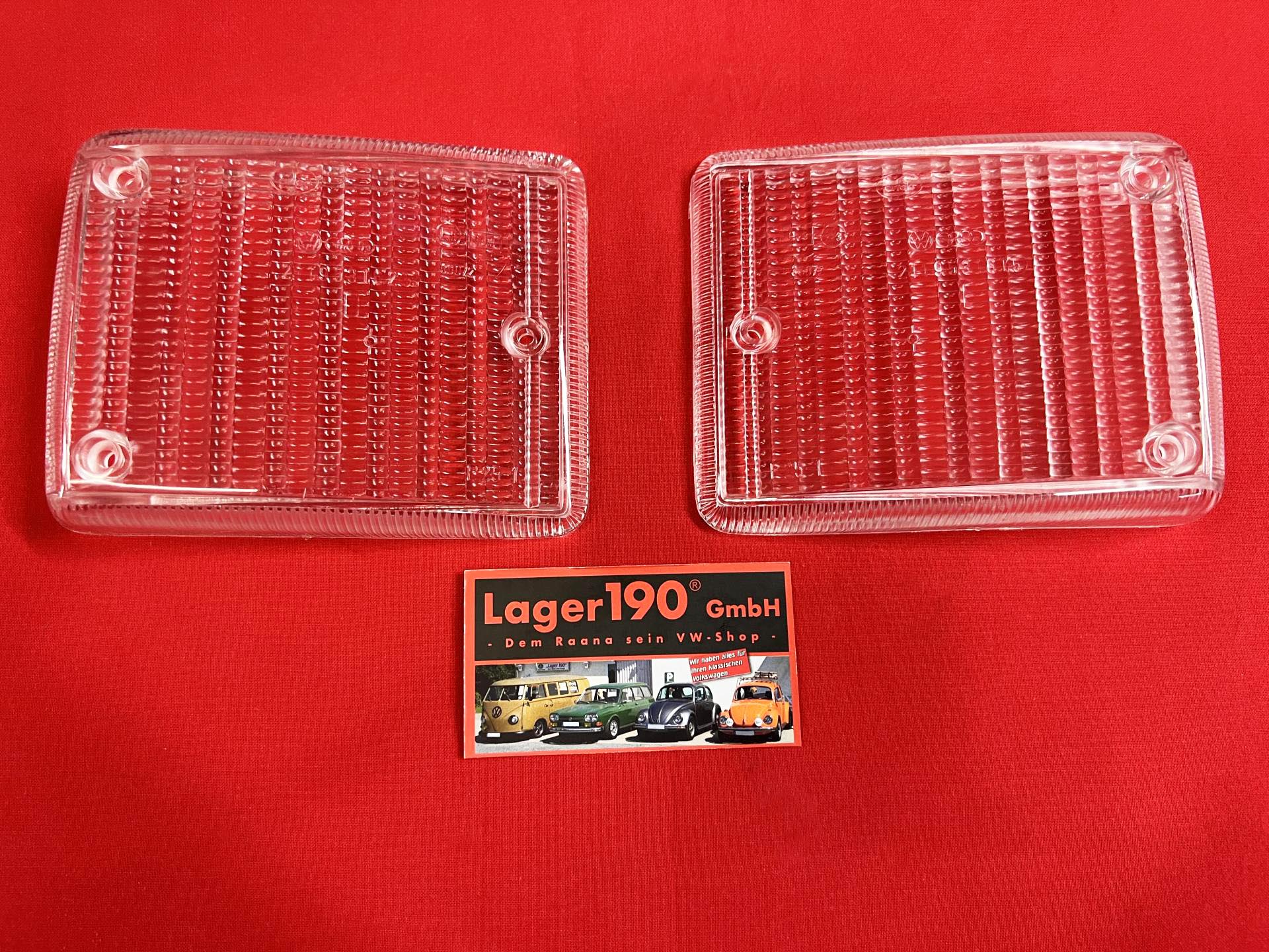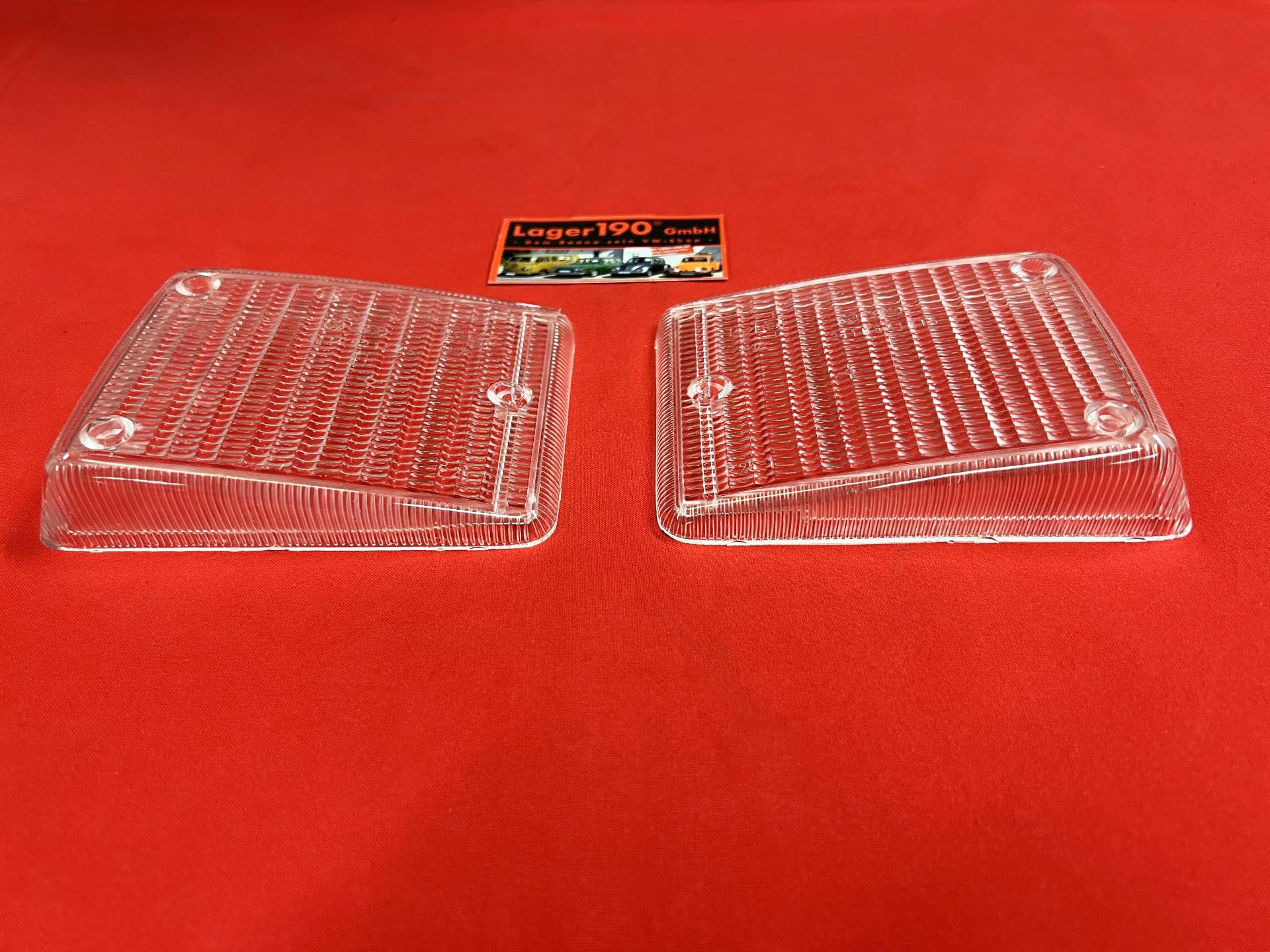 Hier gibt es die beiden Blinkergläser für vorne (rechte und linke Seite) in weiß für den VW Bulli T2b. Es handelt sich hier um originale Ersatzteile mit E-Kennung. Also Eintragungsfrei. Folgende VW Teilenummern stehen auf den Blinkergläsern drauf: 211.953.161 und 211.953.162 VW/Audi steht auch mit drauf. Die Blinkergläser sind nagelneu und unbenutzt. Paßt an alle T2 Busse von 1973 - 1979. |