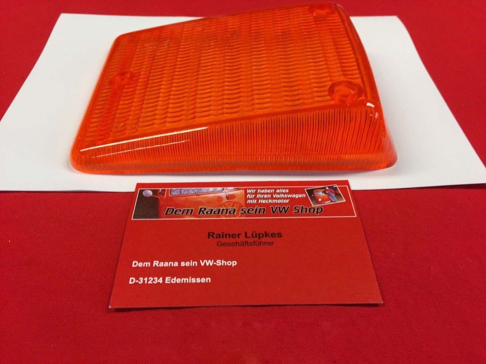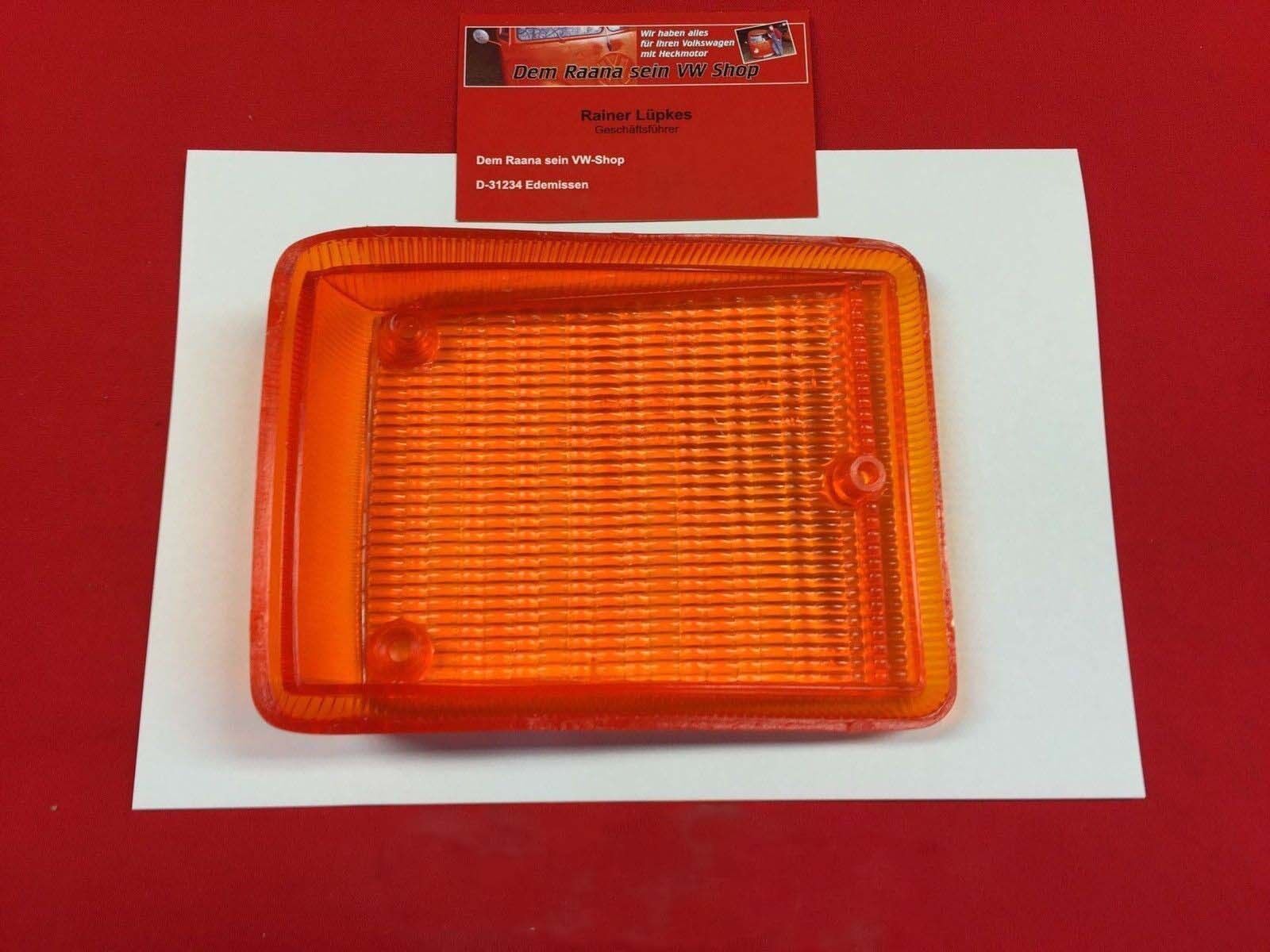 Hier gibt es das rechte Blinkerglas für vorne (Beifahrerseite) in orange für den VW Volkswagen Bus Bulli T2b.