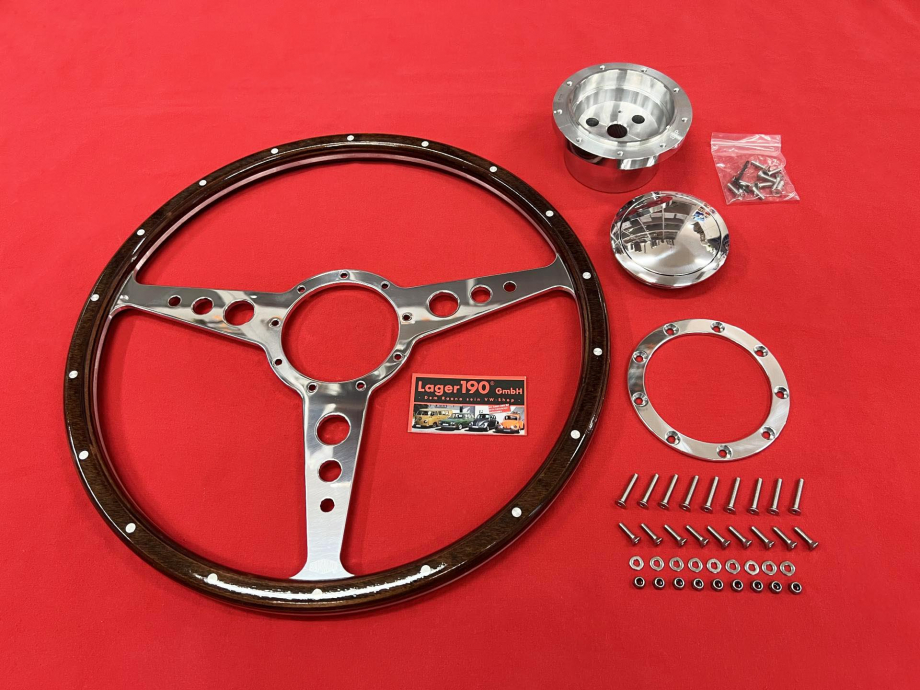 Wunderschönes Holzlenkrad komplett mit passender Nabe für den VW Bus T2 von 75-79.