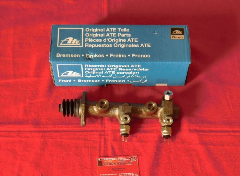 Hier gibt es den Hauptbremszylinder Zweikreisbremssystem von ATE für den VW Bus T2 08.67 - 07.69 ohne Bremskraftverstärker (BKV).