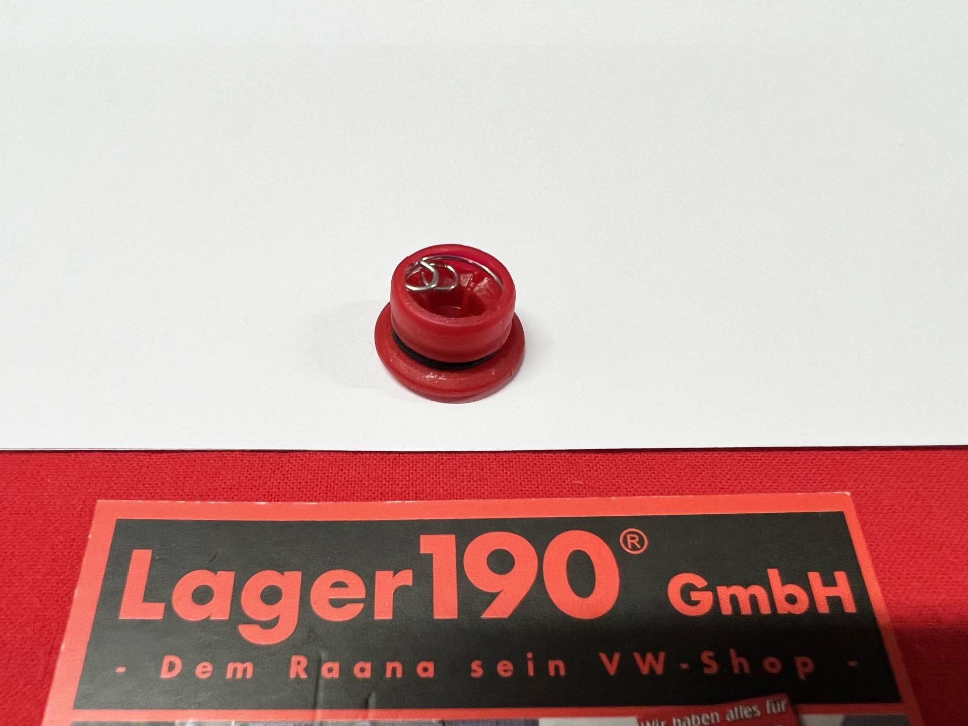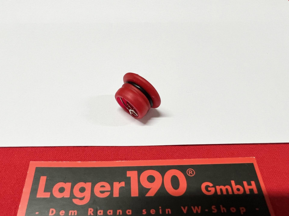 Der Stopfen kommt auf die Nachfüllöffnung vom Lenkgetriebeöl und ist dem Original sehr gut nachempfunden mitsamt O-Ring und Spannfeder.