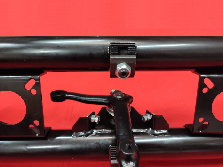 Wenn man seinen Bus mit einer Vorderachse mit Rasterplatten zum Tieferlegen ausrüstet, kann es zu Komplikationen(je nachdem wie tief Sie das Fahrzeug legen) mit der vorderen Schaltstange kommen.