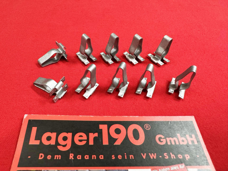 Hier gibt es einen Satz (10 Stück) Metallklammern zur Befestigung des Stoßstangengummis vom VW Bus T3 1979-92.