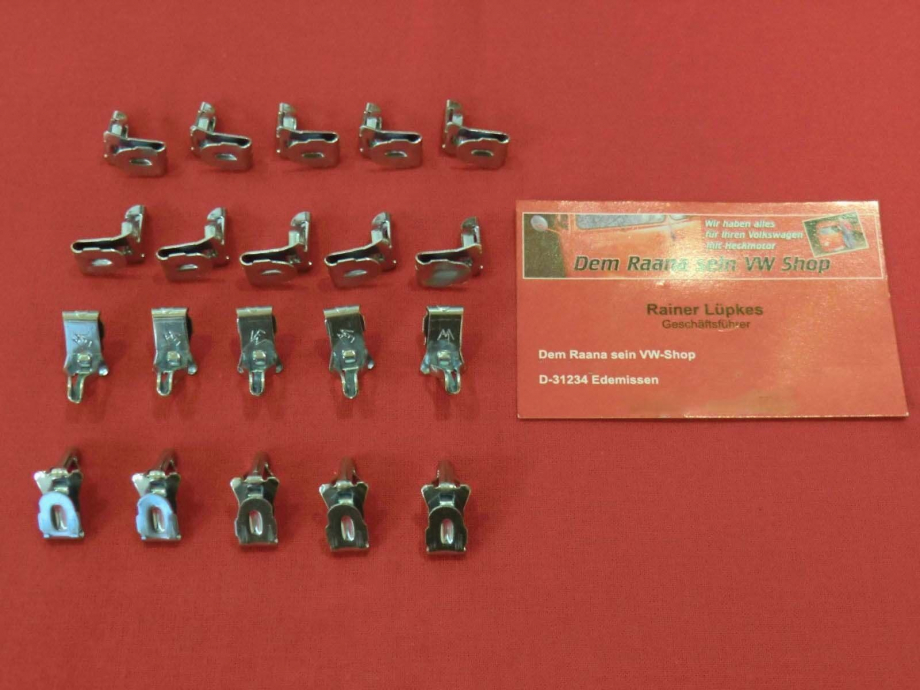 Hier gibt es 20 Stück Halteclips / Halteklammern für die Türverkleidung des VW Bus T2 a und b mit dem 6mm Loch.