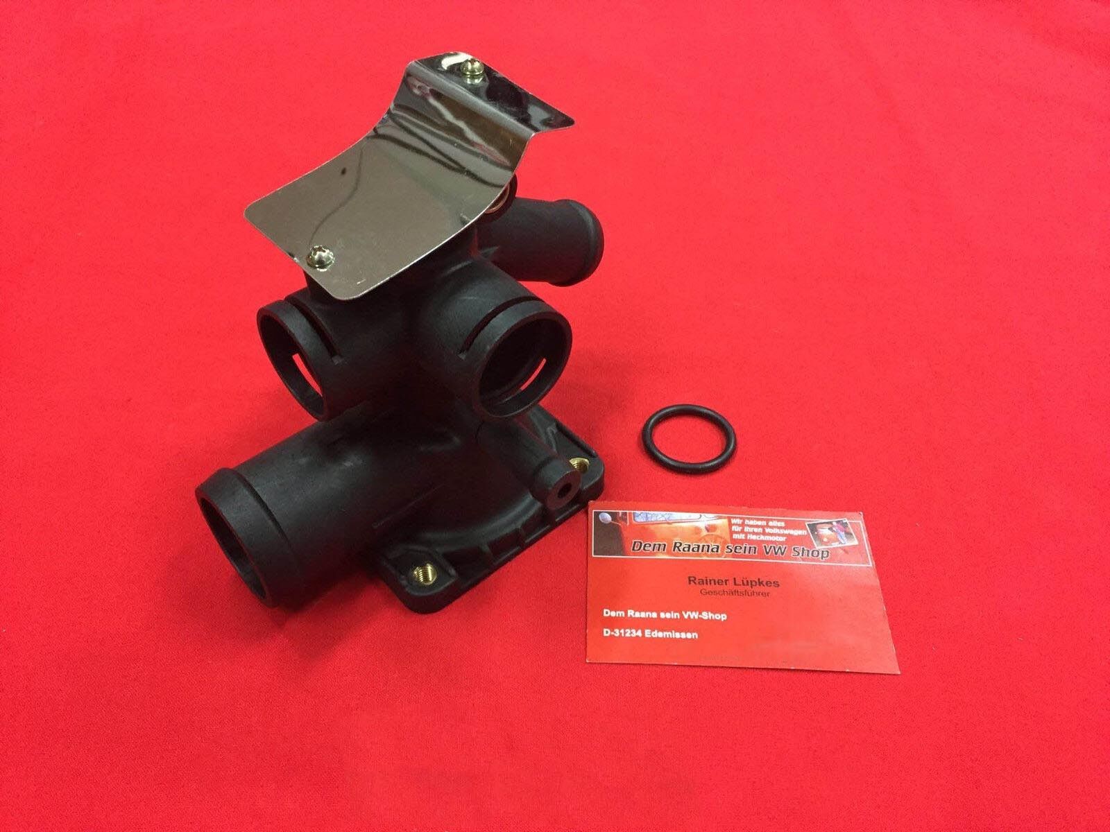 Hier gibt es das Thermostatgehäuse aus Kunststoff mit Rücklauf für Ölkühler.