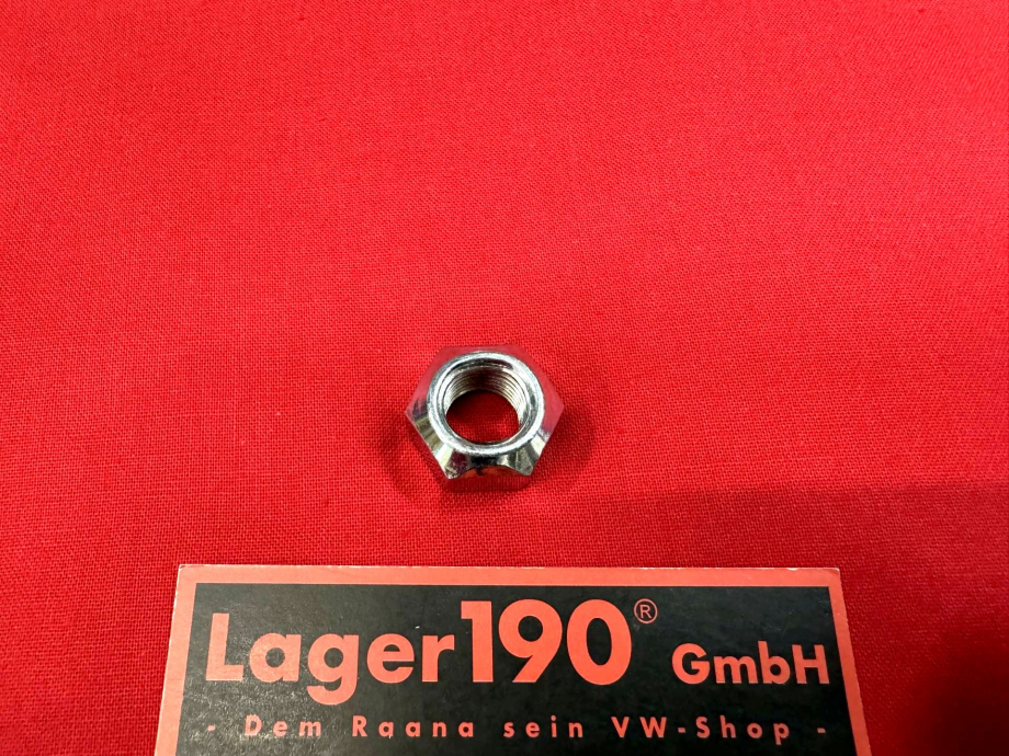 Hier gibt es die selbstsichernde Mutter / Sicherungsmutter für die Zylinderschraube am Querlenker, oben, an der Vorderachse vom VW Bus T3.
