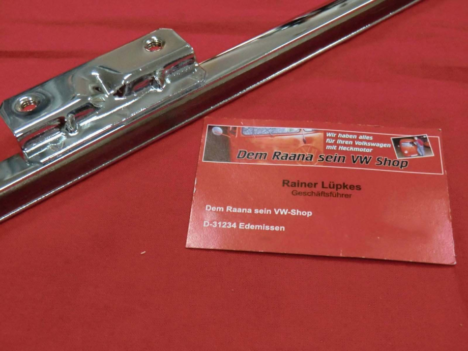 Hier gibt es den verchromten Steg zwischen der Fensterkurbel und dem Dreiecksfenster / Drehfenster für die rechte Seite (Beifahrerseite) vom VW Käfer.