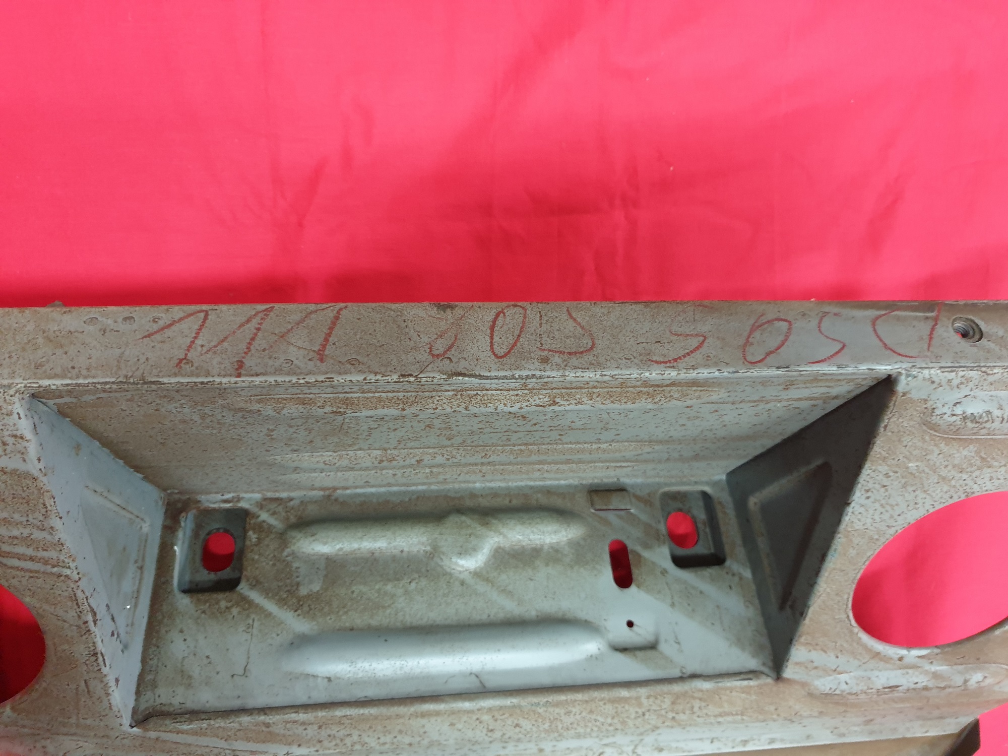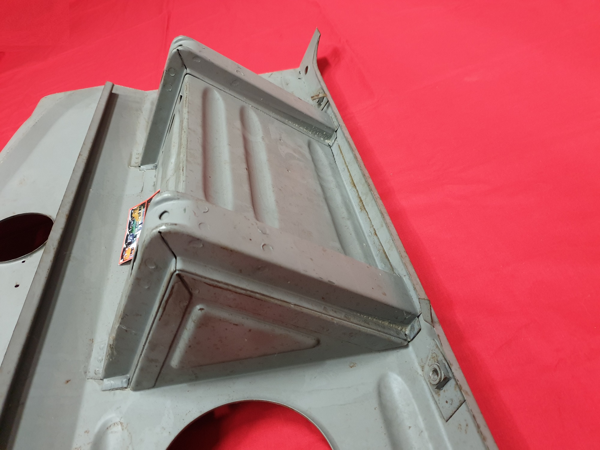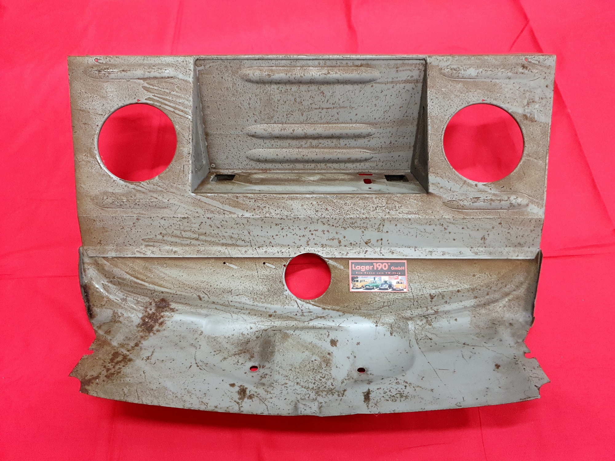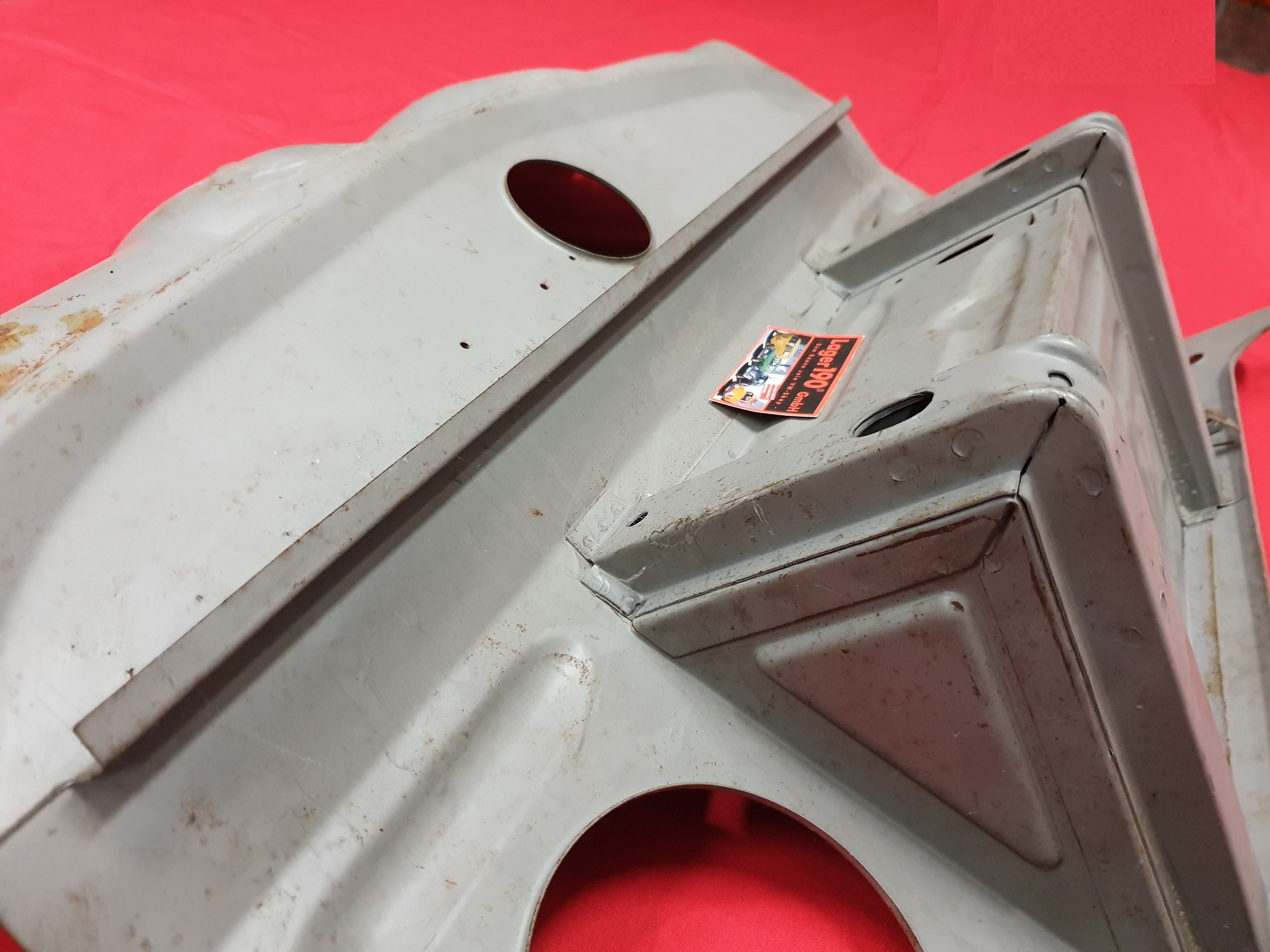 Ein Versteifungsblech für den Vorderwagen des VW Typ 1 ab 8/1957, samt Reserveradwanne.
