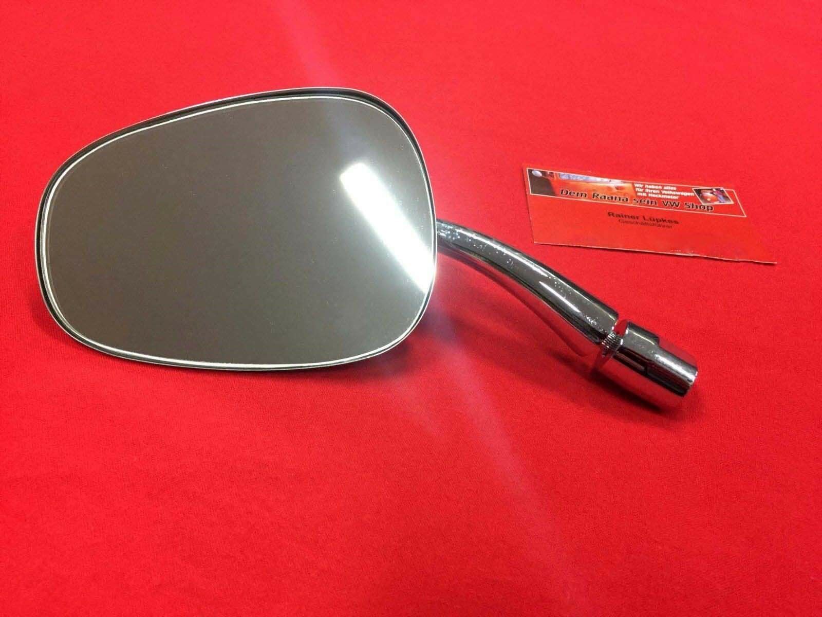 Der Spiegel entspricht der Originalform bis 07/67 und wird mit der Überwurfmutter geliefert.