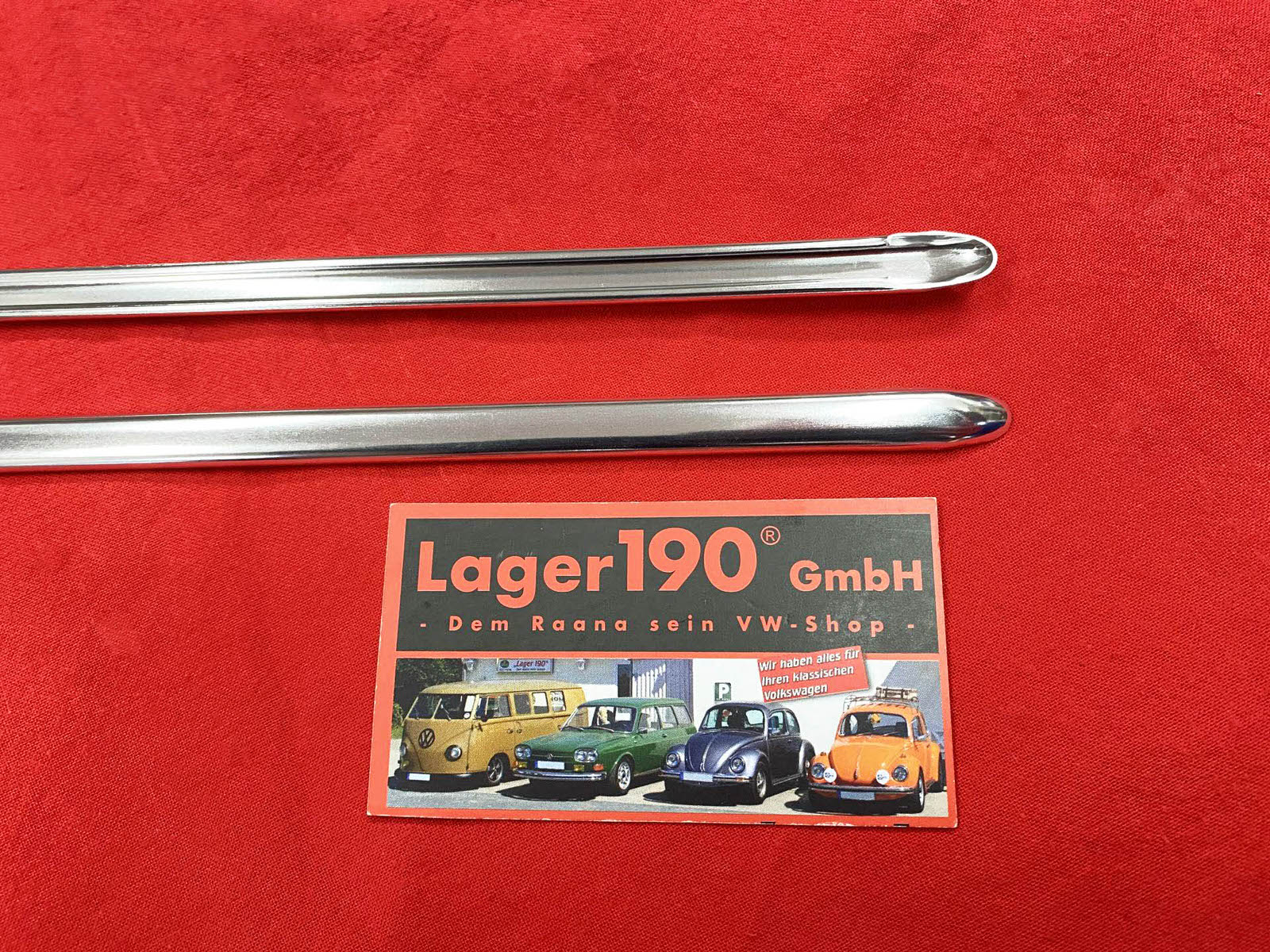 Hier gibt es ein Paar (2 Stück) 33mm Zierleisten für die Trittbretter vom VW Käfer 1200, 1300, 1302, 1303.