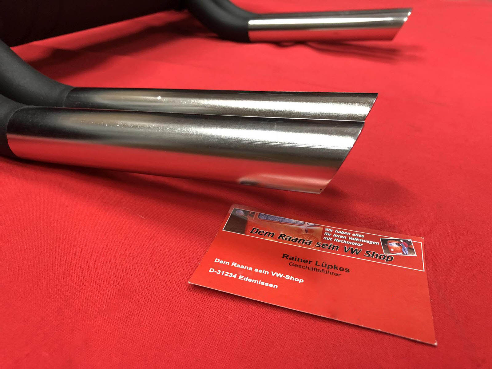 Hier gibt es den 4-Rohr Auspuff im Abarth-Style. Dieser tolle Auspuff ist recht neu auf dem Markt. Sicherlich eine Bereicherung für die Vintage-Gemeinde. Im Original nicht mehr zu finden, oder wenn- dann für deutlich mehr als 1.500 Euro. Nun gibt es endlich den Nachbau für VW Käfer und Karmann Ghia Typ 14 mit 30 PS Motor.