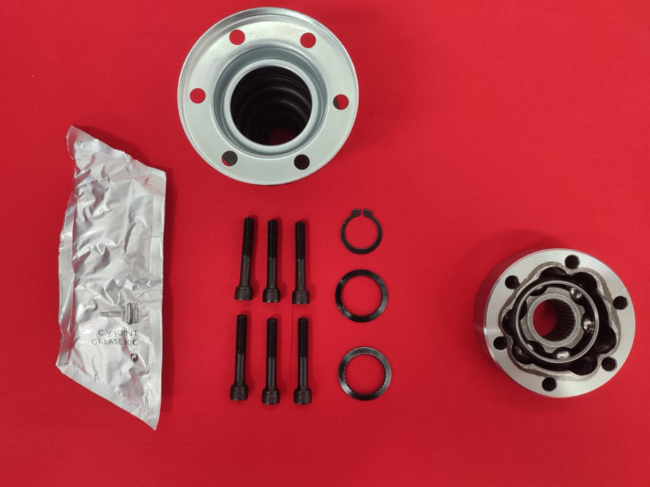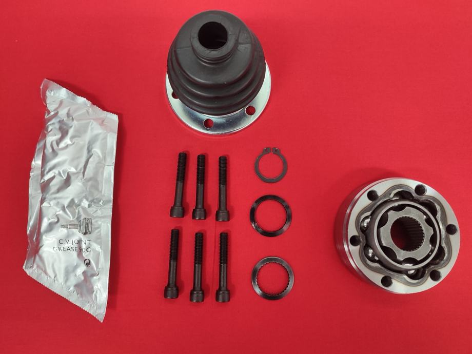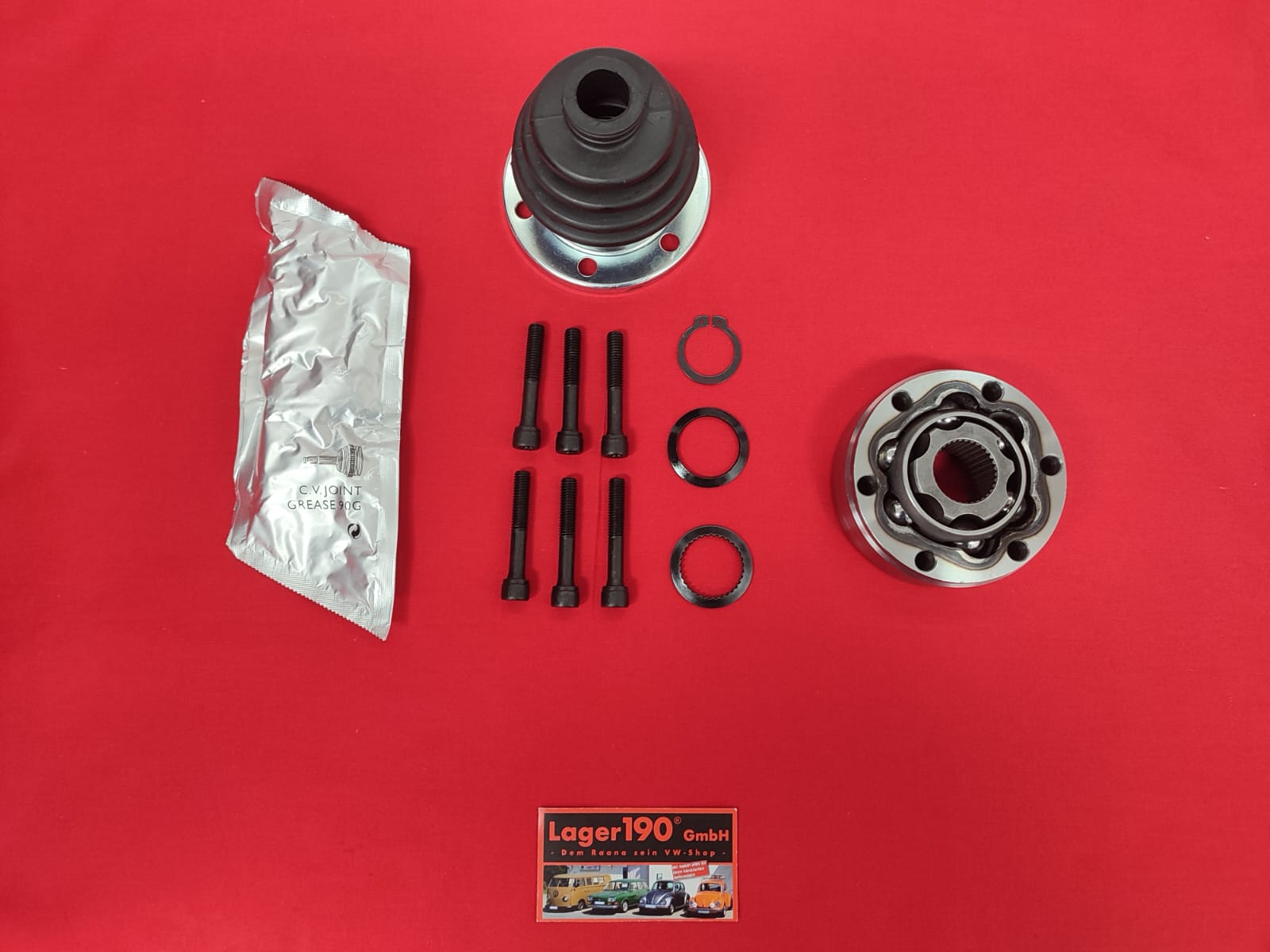 Hier gibt es einen Gleichlaufgelenk Komplettsatz mit Achsmanschette, Fett und Befestigungsmaterial für den VW Volkswagen Käfer, Karmann Ghia und Typ3 mit Schräglenkerfahrwerk und Antriebswellen.
