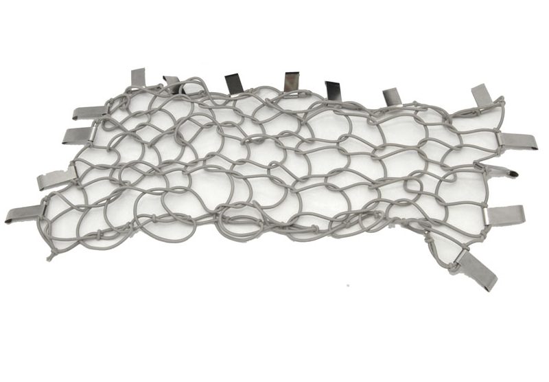 Das Netz kommt in der Farbe grau. Es wird mit den Edelstahl-Haken am Himmel festgeklemmt. Bohren und Schrauben ist also nicht nötig.