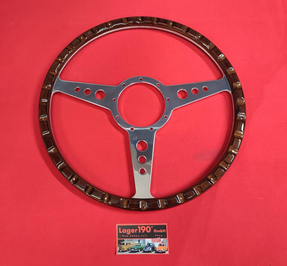 Tolles Lenkrad im Woody Style. Der Durchmesser beträgt 15", das sind 380mm. Zur Auktion gehört die passende Nabe für den VW Käfer von Modelljahr 1961 bis Modelljahr 1973.