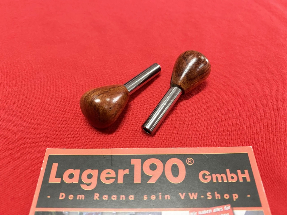 Hier gibt es ein Paar (2 Stück) Türsicherungsknöpfe in der Ausführung Holz / Chrom für alle VW Käfer ab Baujahr 08/66.