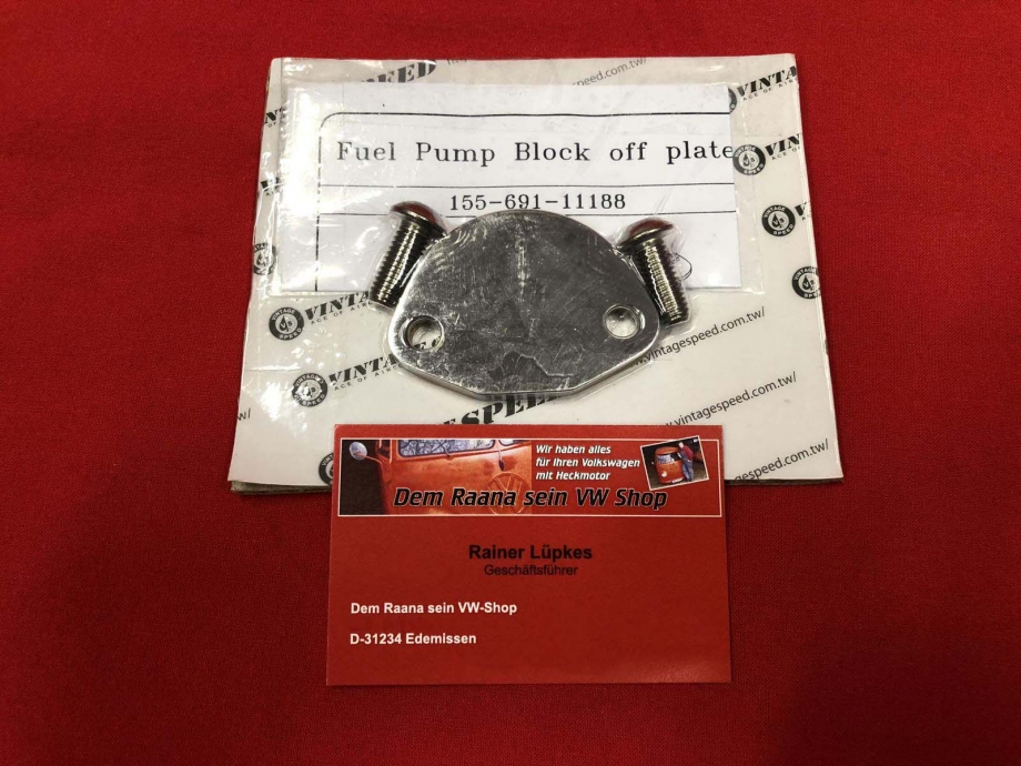 Sofern die serienmässige mechanische Benzinpumpe nicht mehr zum Einsatz kommt, kann diese Verschlussplatte aus Edelstahl die Öffnung am Motorgehäuse verschliessen.