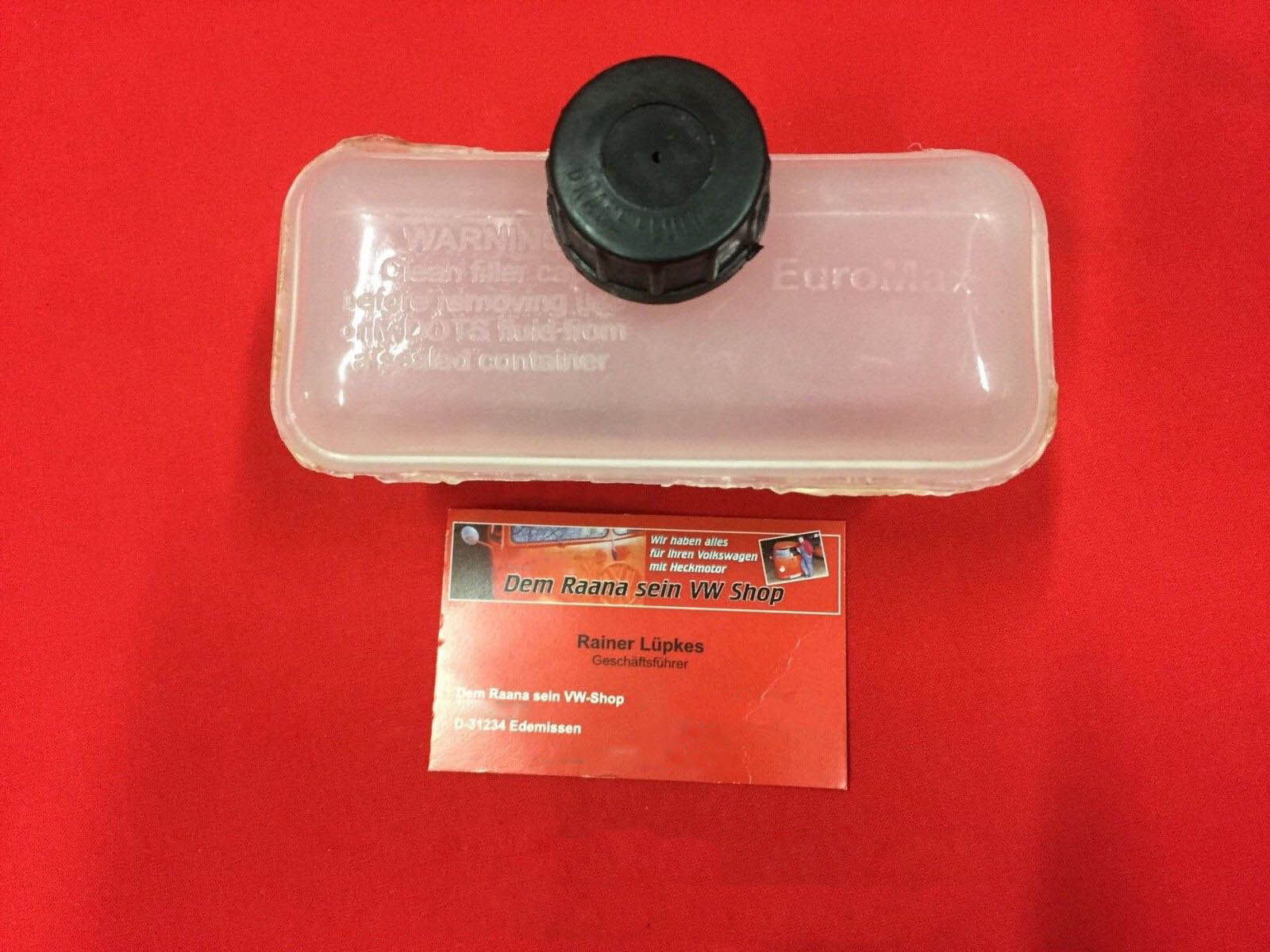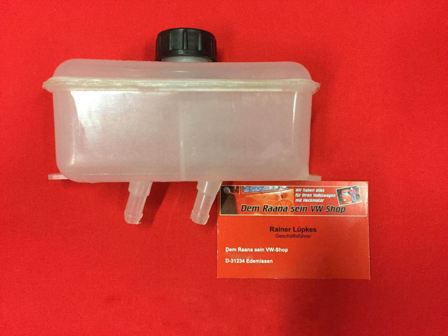 Bremsflüssigkeitsbehälter mit Deckel. Je nach Verfügbarkeit kommt der Behälter mit schwarzem oder transparentem Deckel.