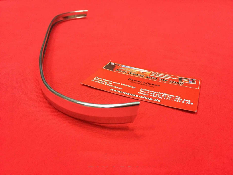 Hier gibt es die verchromte Zierleiste für die Kennzeichenleuchte / Nummernschildbeleuchtung vom Karmann Ghia 8/55-7/74.