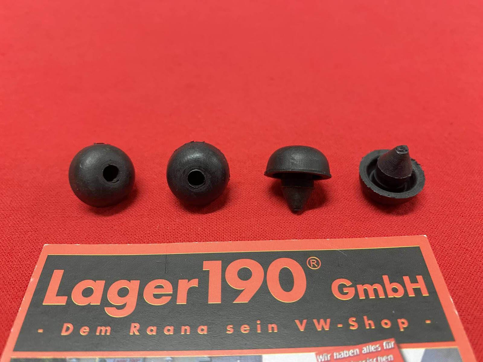 Hier gibt es einen Satz (4 Stück) Führungsgummis / Führungsstopfen für die Türfensterscheibe / Fensterscheibe / Türscheibe für den Karmann Ghia.