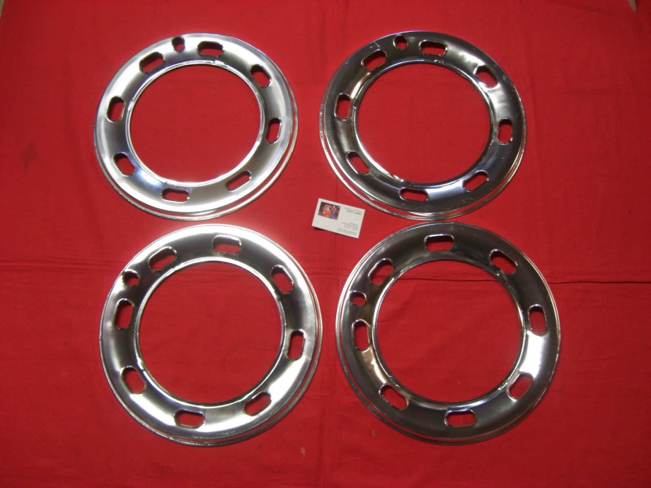Hier gibt es einen kompletten 1 Satz Raddeckelzierblenden / Zierblenden / Zierblende für die Original-Felgen vom VW Käfer, Karmann Ghia und Typ3.